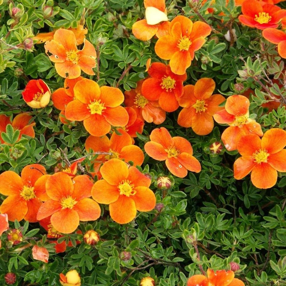 Лапчатка Orange Star - низкий, красивоцветущий кустарник высотой до 0,55 м, с плотной, аккуратной, компактной, подушковидной кроной, перистыми серо-зелеными листьями. Цветет обильно и продолжительно до самой поздней осени. Цветки оранжевые, крупные, диаметром до 4 см. Они могут быть, как одиночные, так и собранные в небольшие соцветия. Эта лапчатка светолюбива, засухоустойчива.